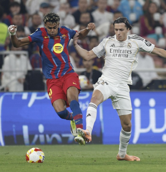 Ngay từ tiếng còi khai cuộc, hai đội đã nhập cuộc với tốc độ cao, sẵn sàng ăn miếng trả miếng. Real Madrid chủ động pressing mạnh mẽ ở tuyến giữa, trong khi Barcelona kiên trì với lối chơi kiểm soát bóng và những pha phối hợp ngắn. Sự cân bằng của trận đấu chỉ bị phá vỡ ở phút 36, khi Raphinha tỏa sáng bằng cú sút chéo góc đầy hiểm hóc, không cho Courtois cơ hội cản phá, mở tỷ số cho Barca.