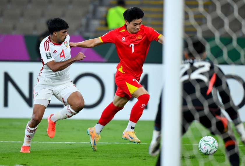 Bước vào trận tứ kết, U23 UAE được đánh giá nhỉnh hơn nhờ thể hình, thể lực và kinh nghiệm thi đấu quốc tế. Tuy nhiên, trái với dự đoán, đại diện Tây Á nhập cuộc khá chậm rãi, trong khi U23 Việt Nam dưới sự dẫn dắt của HLV Kim Sang Sik thi đấu tự tin, kỷ luật và không hề lép vế. Hiệp một diễn ra cân bằng với thế trận giằng co, số cơ hội và thời lượng kiểm soát bóng của hai đội không quá chênh lệch. U23 UAE chủ yếu triển khai bóng dài và bóng bổng, song hàng thủ Việt Nam với sự chắc chắn của Hiểu Minh cùng các đồng đội đã đứng vững.